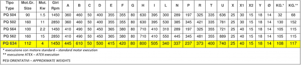 Standard: coclea stampata PE - girante costruita PP- supporto motore in lamiera di acciaio verniciato polveri - viteria acciaio INOX